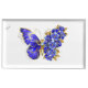 Jewelry, blue, sapphire, sparkling flower butterfly with wing decorated with blue, precious flowers with gold leaves on white background.
