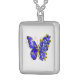 Flower Sapphire Butterfly Silver Plated Necklace