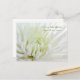 These wedding save the date postcards feature a photograph of a beautiful white spidermum flower.
