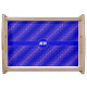If you want a wooden serving tray designed to complement fun decor, then look no further! It's got room for you to put in your initials and uses a repeating pattern of flower shapes on a blue background. It's a fresh, invigorating look.