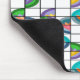 This mouse pad has a Boho design of flowers inside ovals that have been split into quarters and placed on a grid.