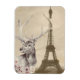 Vintage sepia tint background photo of the Eiffel Tower with overlay of beautiful stag deer with floral base