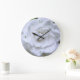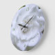 A lovely white gardenia blossom covers the face of this clock, with graceful green numerals at 3,6,9, and 12 ... dainty dots in the same green are at the other hour positions.