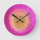 A bright and vibrant pink "hottentot-fig ice-plant" flower center showing pollen and petals. A beautiful and striking clock for any flower lover.