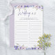 Flower Wedding A-Z Bridal Shower Game Card