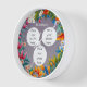 This flower wreath wall clock will make a perfect gift for anyone. Personalize with your own name. Personalize it with your own 3 photos.