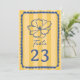 Blue line art floral illustration over yellow stripe background with blue text and hand drawn frame.
