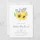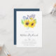 Rustic elegant floral brunch invitations feature a posy of yellow watercolor sunflowers, navy and purple buds, and vibrant green leaves. Personalize with your Mother's Day brunch or luncheon details beneath in a chic mix of block, serif and handwritten calligraphy typefaces.