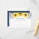 Country chic floral advice cards let bridal shower guests share their favorite words of wisdom for the bride to be. Cards feature a top border of yellow watercolor sunflowers and tiny navy blue buds. "Words of wisdom for the future Mrs. [Name]" appears in modern hand lettered calligraphy script.
