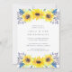 Our Flowerfields bridesmaids luncheon invitation surrounds your luncheon or brunch shower details with clusters of yellow watercolor sunflowers, blue and purple buds, and green foliage. An sweet choice for summer or autumn bridesmaids brunches in rustic outdoor or country settings.