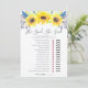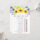 Country chic bridal shower game card matches our Flowerfields bridal shower collection and features a top border of yellow watercolor sunflowers and tiny navy blue buds. Double sided card lets you get two games in one! Front features He Said, She Said and reverses to a wedding themed word scamble. Personalize with the bride to be's name and date of shower. For additional customization, feel free to contact me!