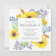 Our Flowerfields brunch invitation in a unique square format frames your Mother's Day brunch or luncheon details with yellow watercolor sunflowers, lush green leaves, and purple and blue buds.