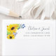 Chic country floral return address labels frame your name and address with yellow watercolor sunflowers, green leaves, and tiny blue and purple buds. Designed to match our Flowerfields event stationery collection.
