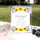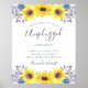 Planning an unplugged ceremony but not sure what wording to use to let your wedding guests know to put away their phones? This rustic chic poster takes care of it for you in style. Elegant botanical design features "welcome to our unplugged ceremony" in handwritten calligraphy and block typefaces with your names and custom message beneath. Shown with "please put away your phones and cameras until after the ceremony." Adorned with borders of yellow watercolor sunflowers and navy blue wildflower buds that match our country chic Flowerfields wedding collection.