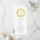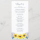 Our country chic wedding program features your ceremony details in elegant lettering, with your names encircled by a wreath of yellow watercolor sunflowers, green leaves and tiny navy blue buds. Reverse side lists the members of your wedding party with easily editable text fields. Coordinates with our Flowerfields wedding invitation collection for summer, spring, outdoor or garden weddings in rustic country settings. Use the template fields to add your ceremony and bridal party information, and then click "Customize" to reposition elements if needed.