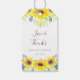 Attach these rustic chic tags to your wedding favors to say thank you to guests in summery style. White tags feature clusters of yellow watercolor sunflowers, green leaves and tiny navy blue buds, framing "love and thanks" and your names and wedding date. All text is editable for ultimate customization. Designed to match our Flowerfields wedding collection.