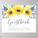 Designed to match our rustic country Flowerfields wedding collection, this elegant botanical sign invites wedding guests to sign your guestbook. Personalize with two lines of custom text in calligraphy script and traditional serif lettering (shown with "Guestbook; please leave your wishes for the new Mr. and Mrs. [name]"), adorned with yellow watercolor sunflowers and navy blue wildflower buds.