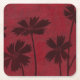 Flowerhead Silhouettes on Crimson Background Square Paper Coaster