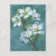 A delicate illustration of a blooming branch with white spring flowers against a blue-green background. Soft petals, yellow stamens, and smooth brushstrokes create an atmosphere of lightness and harmony. The artistic composition conveys the feeling of nature’s spring awakening. Perfect for use in design, printing, decor, and holiday materials.