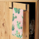 Bring a modern touch of nature into your kitchen with this towel featuring hand-drawn prickly pear cacti in bloom on a fashion forward pink background. A version of this towel with a white background and multi-color "raindrops" is also available.
