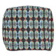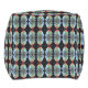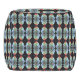 The colorful, abstract pattern by ZoeSPEAK on this Cube Pouf began as Zoe’s original photograph of a flowering cactus plant. The pink flower buds are emerging from the bluish green, disc shaped leaves of the plant. An almost black background completes this boho pattern.