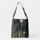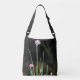 The softly dramatic image on this crossbody Tote Bag is an original photograph by ZoeSPEAK of a flowering chives plant. Each pale lavender flower sits atop its light bluish green tubular stem. The dark, evening background of the photo shows off the beauty of this delicious herb.
