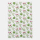 Kitchen dish towel with flowering herbs and bees pattern. Add a monogram initial in dusty pink over a white background. The design features medicinal and flavorful herbs such as white yarrow, thyme, green basil and pink clover. Tiny bumblebees fly to each of the botanicals in the design. The design is placed vertically and is perfect for hanging.