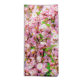 Flowering Plum. Blossoms flowering plum shrubs also known as flowering almond. Pink festive flowers against blue and green background. Spring theme. This is a plum tree, this is an almond tree, this is a cherry tree. This tree is everything. It originates from China and is scientifically called Louiseania triloba, Amygdalus triloba and Prunus triloba. It is considered to be a shrubby cherry, some people call it sakura. Very elegant and decorative plant. Square format products and souvenirs.