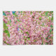 Flowering Plum. Blossoms flowering plum shrubs also known as flowering almond. Pink festive flowers against blue and green background. Spring theme. This is a plum tree, this is an almond tree, this is a cherry tree. This tree is everything. It originates from China and is scientifically called Louiseania triloba, Amygdalus triloba and Prunus triloba. It is considered to be a shrubby cherry, some people call it sakura. Very elegant and decorative plant. Horizontal or landscape oriented products and souvenirs.