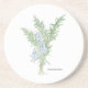 Sandstone Coaster featuring a botanical illustration of a sprig of a flowering rosemary herb plant. Artwork copyright: Dominic A. White. All rights reserved.