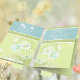 Whimsical Romantic Chartreuse Green and Dusty Blue Abstract Modern Flowers and Bumblebee Wedding Bi-fold Program.