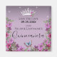 Lovely faux shinny stars on the top border. Elegant and trendy design with fancy script typography. All text is adjustable and easy to change for your own party needs. Great elegant Quinceañera design. Available in different colors. Beautiful princess tiara with flower arrangement. blue Butterfly with on bottom floral border. Different background colors available.