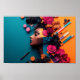Beautiful poster featuring a dark-skinned woman surrounded by flowers and cosmetics, celebrating beauty and elegance. The vibrant design captures both grace and strength, making it a perfect addition to any home, office, or beauty lover’s space. Ideal for those who appreciate diverse representations of beauty. Available in various sizes and customizable options.