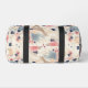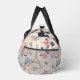 Duffel bag with a lovely French themed pattern. Pretty flowers and an Eiffel tower and butterflies. Colors include pink, blue, peach and cream.