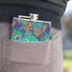Well made flask, a little better than I had expected. Flask came in clear plastic box which gave it a nice presentation when I took it out of the zazzle packaging. Image is not printed on flask but on sticker. Don't know how this will hold up I haven't used it yet. This would make a Great gift! I plan to purchase more for friends! Cheers. I thought a little brighter than computer. Very crisp, writing wasn't
