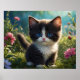 *~* Flowers Black Kitty Cat 5:4 Feline Kitten Poster