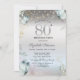 Flowers Blue Butterflies Silver 80th Birthday Invitation