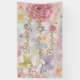 Set a festive scene with the Flowers & Butterflies Pastel Garden Collage Banner. This delicate design features a charming collage of flowers and butterflies in soft pastel tones of pink, gold, blue, cyan, and white, all set against a beautifully blended backdrop of purple, cream, and blue.