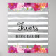 Poster print for favors wedding sign with flowers design and faux silver foil stripes background.