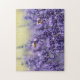 This game puzzle is shown with a photo print of lavender flowers and bees.