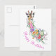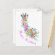 Colorful Flowers Bouquet Giraffe Birthday Cards MIGNED Art Drawing - Customizable - or Add yoy Text / Name