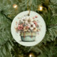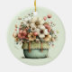 Ornament with a whimsical stylish pot of flowers. Green, pink and cream colors. Set in a green pot with a plaid cloth. Shabby vintage vibe.