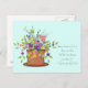 Colorful flowers in a plant pot with "How beautiful a day can be, When kindness touches it! George Elliston" This design makes a great thank you postcard.