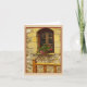 A MULLIONED WINDOW WITH PRETTY RED FLOWERS ON WINDOW SILL.. FACADE IS OLD STONE IN BEIGE, CREAM AND PALE YELLOW NOTE CARD IS BLANK INSIDE FOR YOUR OWN MESSAGE.