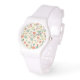 I was pleasantly surprised by the good quality of this watch. It's an easy size to wear on a small wrist and both the band and the watch are well made. I also liked the translucent case the watch is packaged in. The printing is crisp and clear and shows off my Create With Photos oyster flower design well.