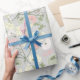Flowers Pink Green Botanical Pattern Wrapping Paper