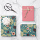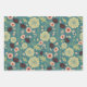 Flowers Pink Green Floral Pattern Wrapping Paper Sheets
