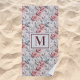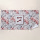 Flowers pink white monogram initial beach towel