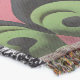 A quality printed throw has its advantages. This is a much finer weave throw than its loopier cousins, and though lighter, it is worth the investment for custom room accessorizing. The back is much prettier than the typical brown, and the fringe on the long sides very vivid, the selvage nicely done. Before photographing, I washed the throw in cold water, delicate, with a thicker woven throw the same size. On tumble dry low, this throw was dry in half the time as the other. This is a very practical quality if you use throws for furniture covers or to wrap up in frequently. The sleekness of the fabric makes it a great layer for accenting or protecting without the feeling of sitting on too much stuff. Perfect for napping or when you feel a light chill coming on. The color printing is beautiful and on this fabric, matched the design and color of my Photoshop image. This is an advantage for blending room fabrics and colors. The fringe on the short sides prints the colors from the design image and therefore varies from the side fringe. I streaked a white fractal line through the plaid pattern to give the illusion of weaving. This printed as crisp as an illusory thread, and put some white in the short side fringe, showing another advantage of print vs loomed- for artistic purposes, line lines, detail, and color integrity can be planned and preserved. My loomed throws have color limitations and more of a needlepoint texture. Print throws reproduce an exact image. The throw felt a little stiff straight out of the package, but this went away in the first delicate wash. Of course I searched the wash water for ink or bleeding and there was none.