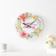 Flowers Wreath Modern Typography Merry Christmas Large Clock